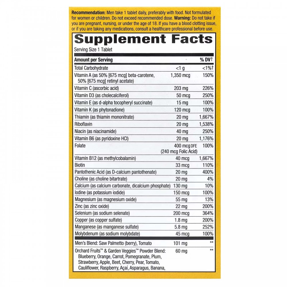 • Високоефективні комплексні мультивітаміни для чоловіків