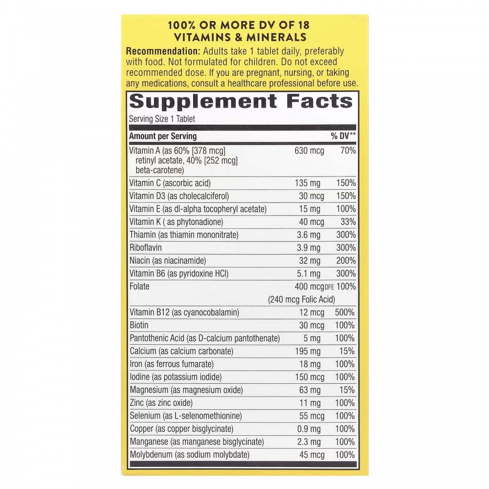 Для приймання один раз на деньВисока ефективністьВітаміни групи B допомагають перетворювати їжу на енергіюМультивітамінна добавка100 % або більше добової норми 18 вітамінів і мікроелементівБез кофеїну...