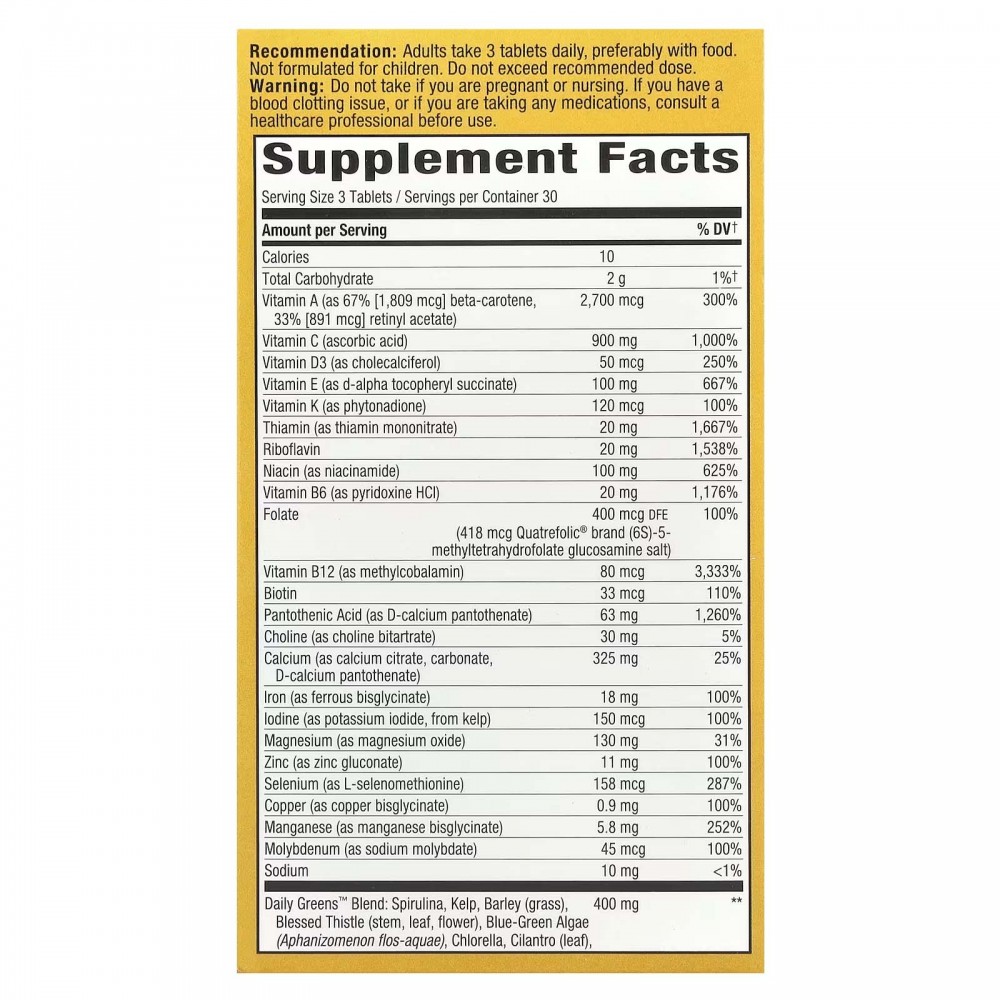 MAX Potency (3 таблетки в день) мультивітамінні таблетки з поживними сумішами на основі харчових продуктів, а саме: