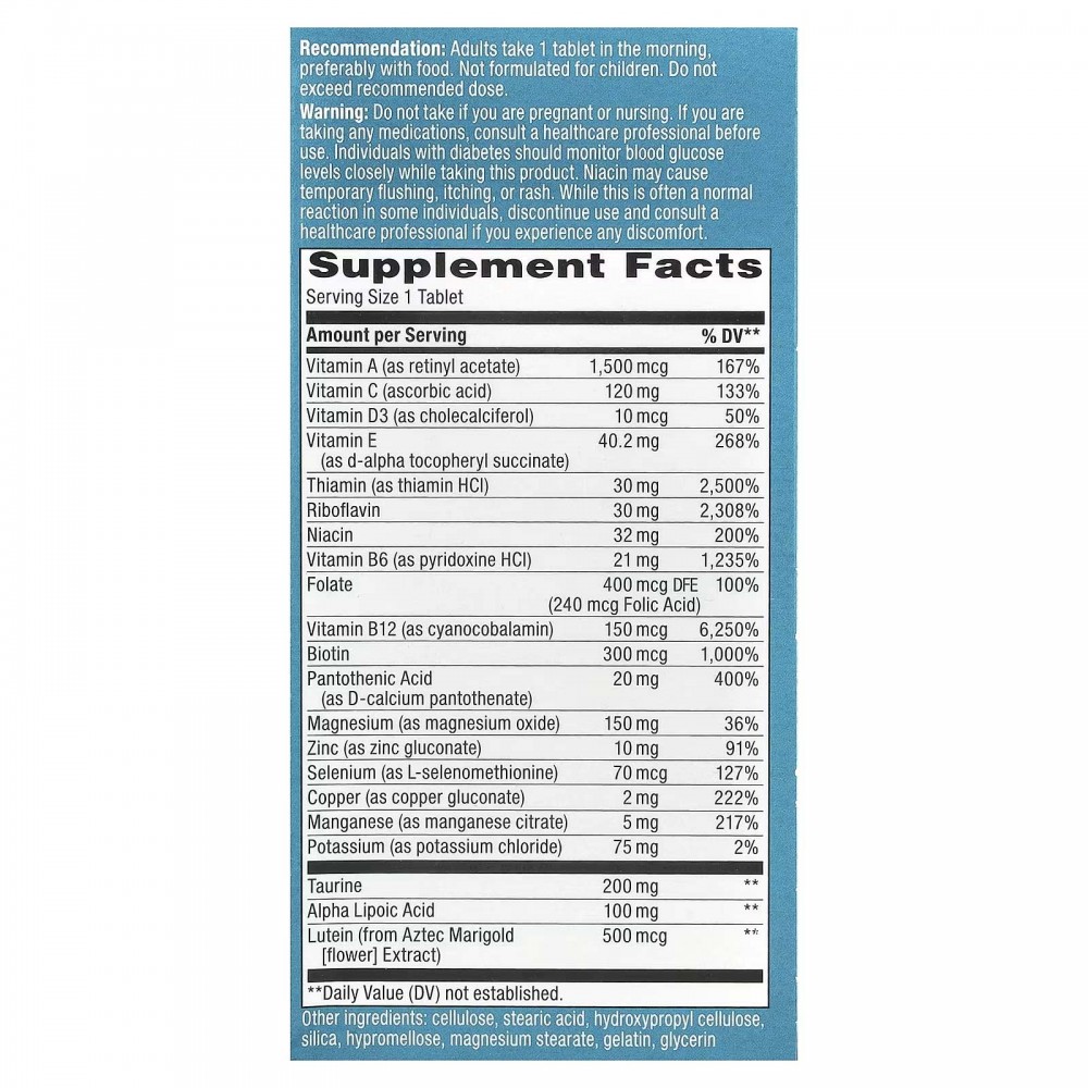Для приймання один раз на деньМультивітамінна добавкаБез глютенуЩоденна поживна підтримка для людей із діабетом.Високоефективні мультивітаміни з 200 % або більше добової норми 10 вітамінів і мікроелем...