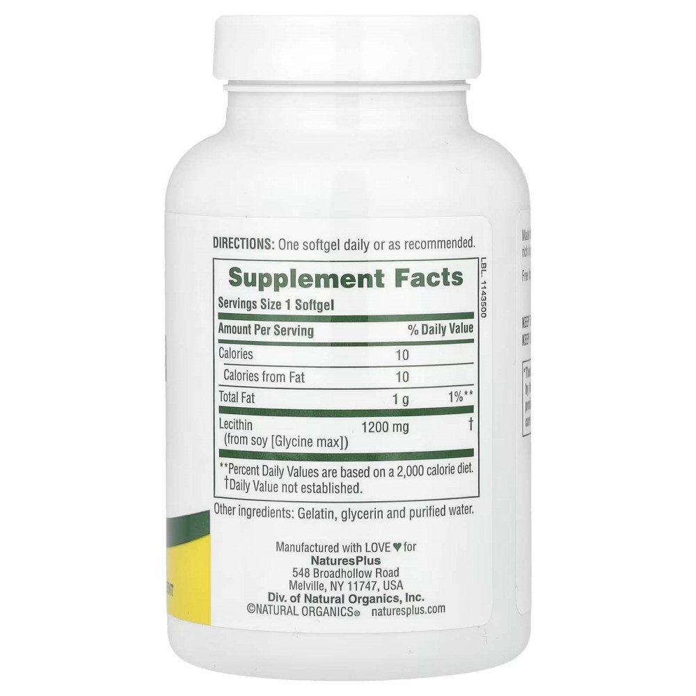 NaturesPlus, лецитин, 1200 мг, 90 капсул