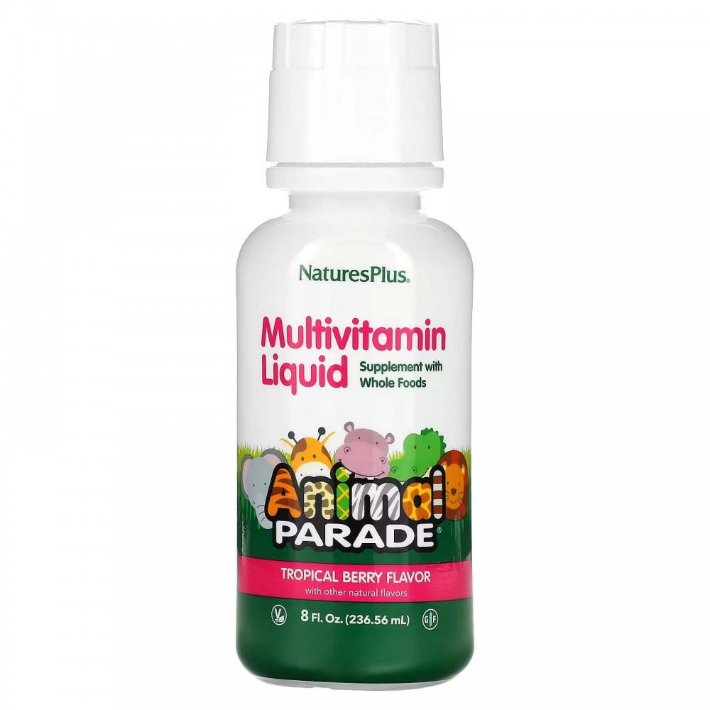 NaturesPlus, Source of Life, Animal Parade в рідкій формі, мультивітаміни для дітей, зі смаком натуральних тропічних ягід, 236,56 мл