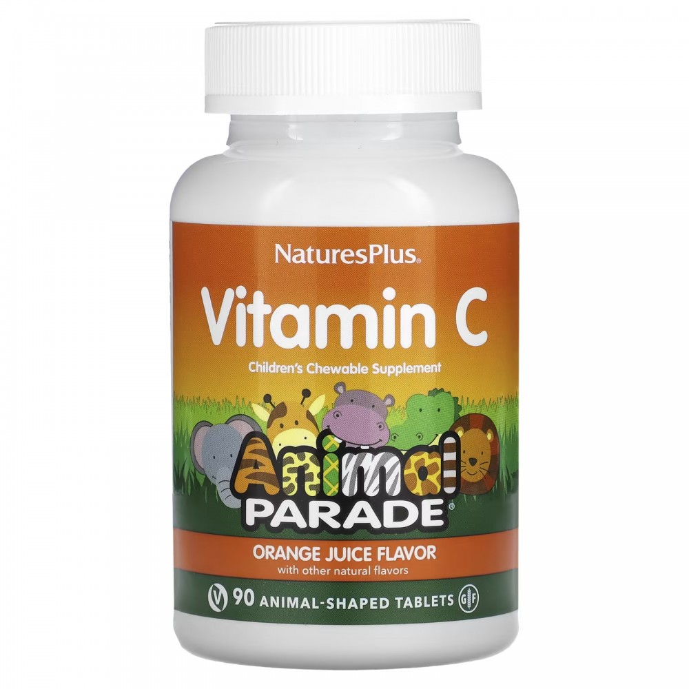 NaturesPlus, Source of Life, Animal Parade, вітамін C, з натуральним смаком апельсинового соку, 90 таблеток у формі тварин