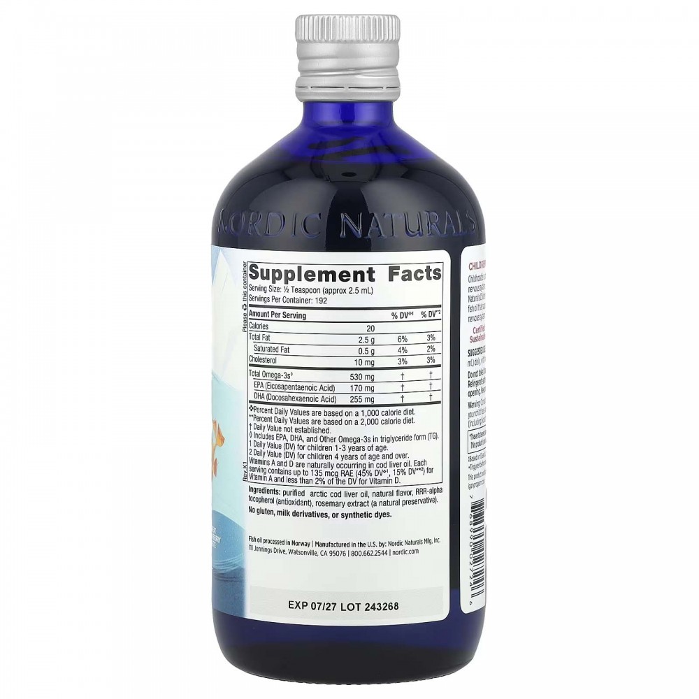 Добавка Children's DHA Nordic Naturals, виготовлена із повністю дикої арктичної тріски, є лідером продажів продуктів з омега-3 для дітей у США*.Цей засіб підтримує здатність до навчання, розвиток мозку і здоров’я нервової системи.