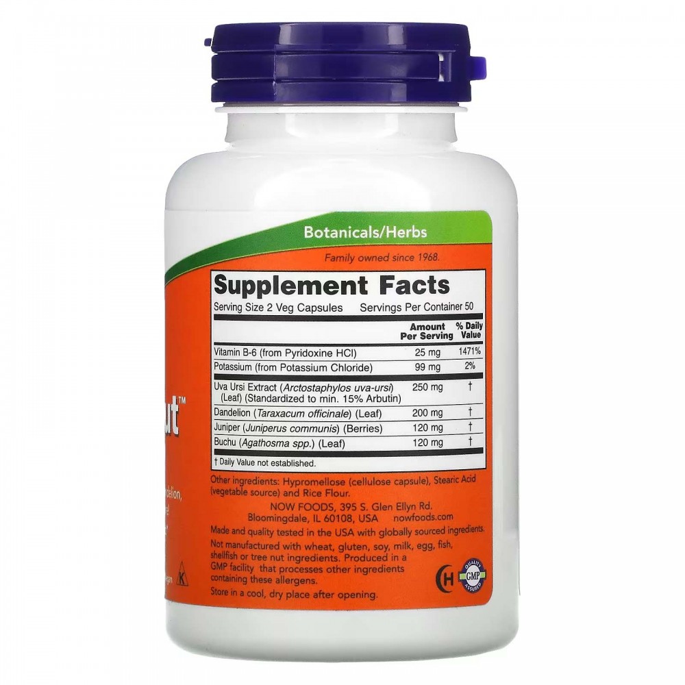 Засіб Water Out™ від NOW® — це суміш трав і поживних речовин, що доповнюють одне одного, розроблена для підтримки нормальної роботи сечовивідних шляхів і правильного балансу рідини в організмі. До складу Water Out™ входять кульбаба, яка традиційно використовувалася для підтримання водного балансу, а також мучниця звичайна та ялівець, які історично застосовувалися травниками для підтримки здоров’я сечовивідних шляхів. У поєднанні з поживними компонентами вітаміном B6 і калієм Water Out™ допомагає підтримувати нормальну роботу сечовивідних шляхів.