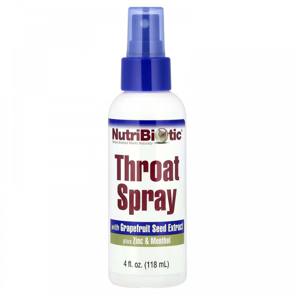 NutriBiotic, Спрей для горла з екстрактом насіння грейпфрута, цинком і ментолом, 118 мл