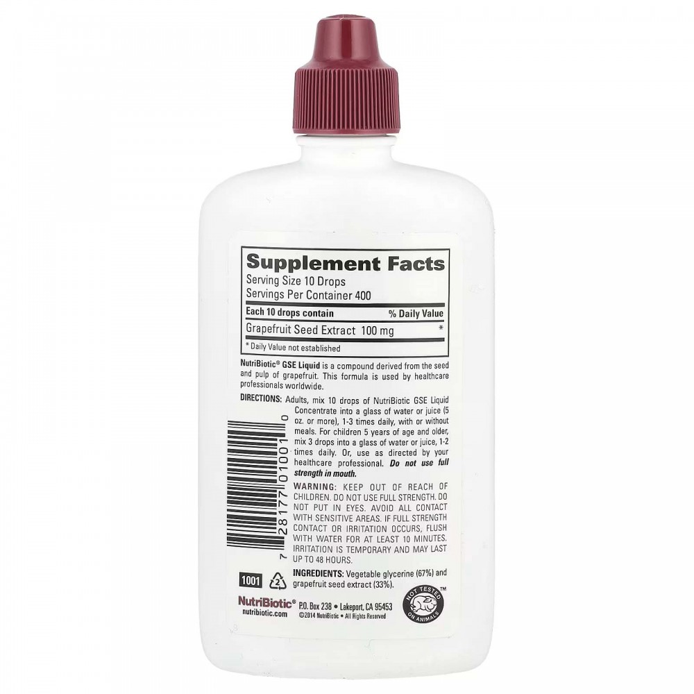 Рідкий концентрат NutriBiotic GSE має натуральний склад, отриманий з насіння і м’якоті грейпфрута. Ця формула використовується фахівцями у сфері охорони здоров'я в усьому світі.
