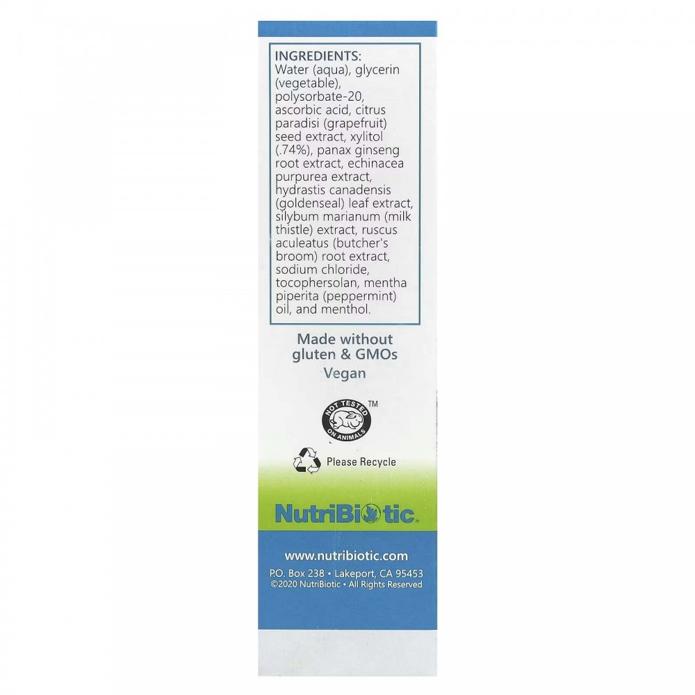 Назальний спрей NutriBiotic® Plus — це чудовий назальний змащувальний засіб, що містить корисні інгредієнти, зокрема екстракт насіння грейпфрута, вітамін C, рослинні екстракти, хлорид натрію, перцеву м’яту, ментол та інші корисні інгредієнти в зручній упаковці з дозатором!