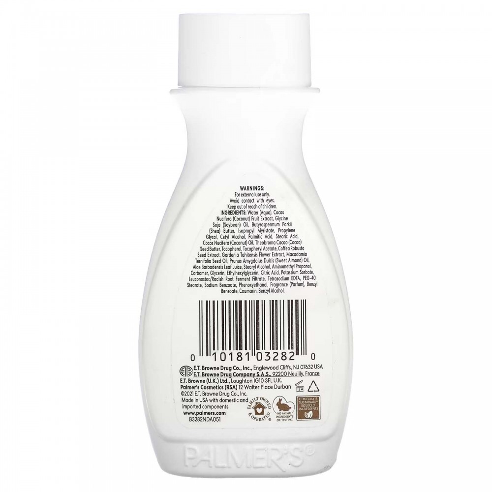 Компанія Palmer's®, що виробляється в США, є надійним брендом уже понад 180 років. Вона пропонує високоякісні натуральні продукти, які передаються з покоління в покоління. Бренд бренду з кокосовою олією № 1 в Америці для догляду за шкірою Palmer's Coconut Oil Formula містить натуральні інгредієнти найвищої якості для чудового зволоження з голови до ніг.