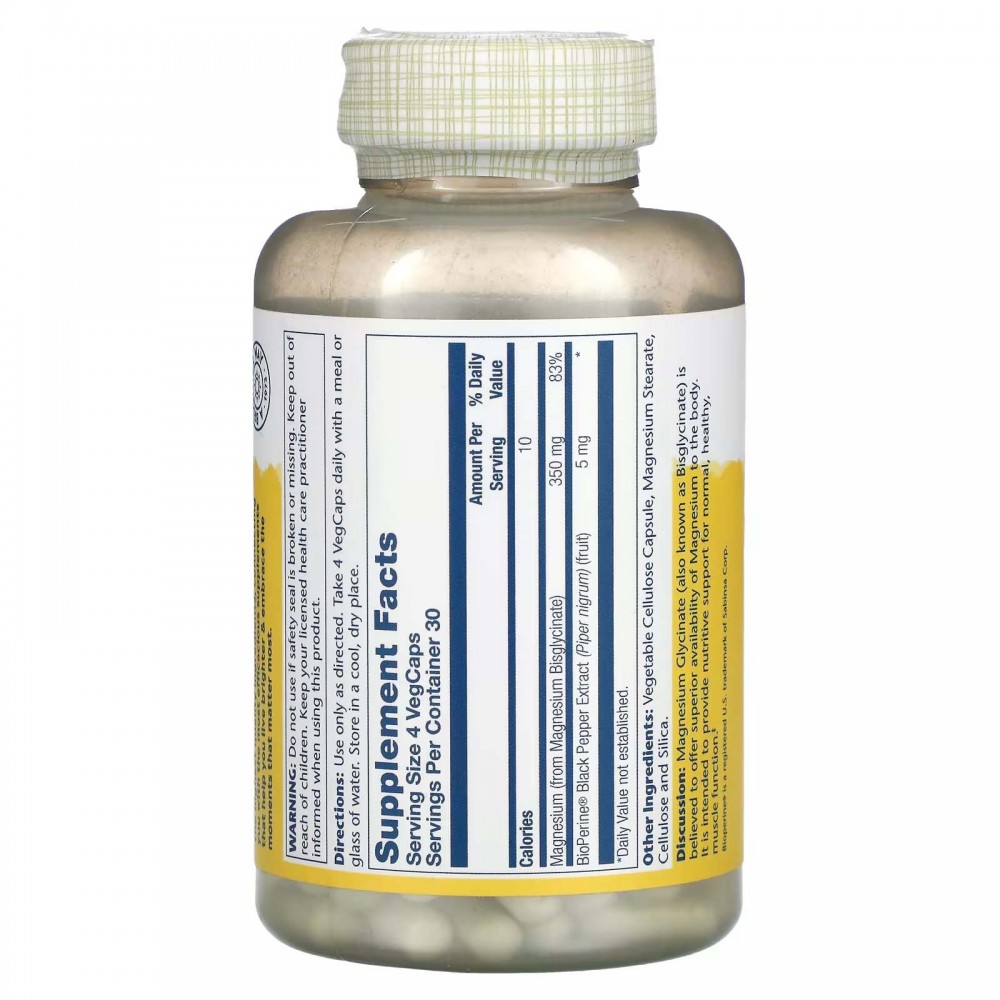 Solaray, гліцинат магнію з підвищеною засвоюваністю, 350 мг, 120 капсул VegCap