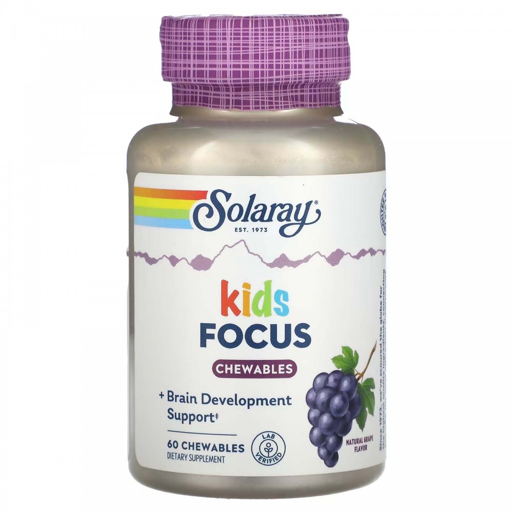 Solaray, для дітей, розвиток мозку, натуральний виноград, 60 жувальних таблеток