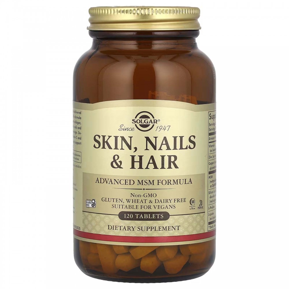 Solgar, шкіра, нігті та волосся, поліпшена формула з МСМ, 120 таблеток
