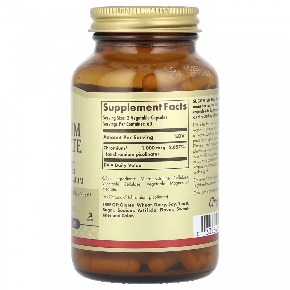 Solgar, піколінат хрому, 500 мкг, 120 вегетаріанських капсул