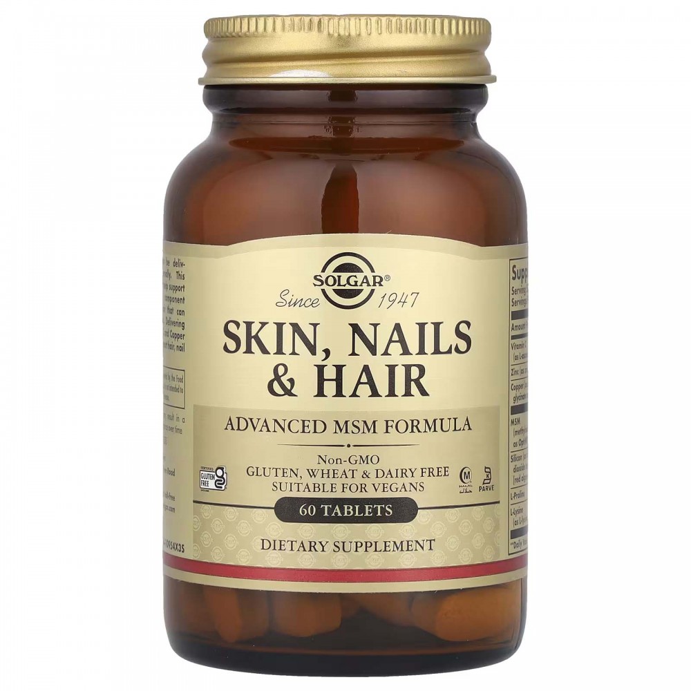 Solgar, шкіра, нігті і волосся, поліпшена рецептура з МСМ, 60 таблеток