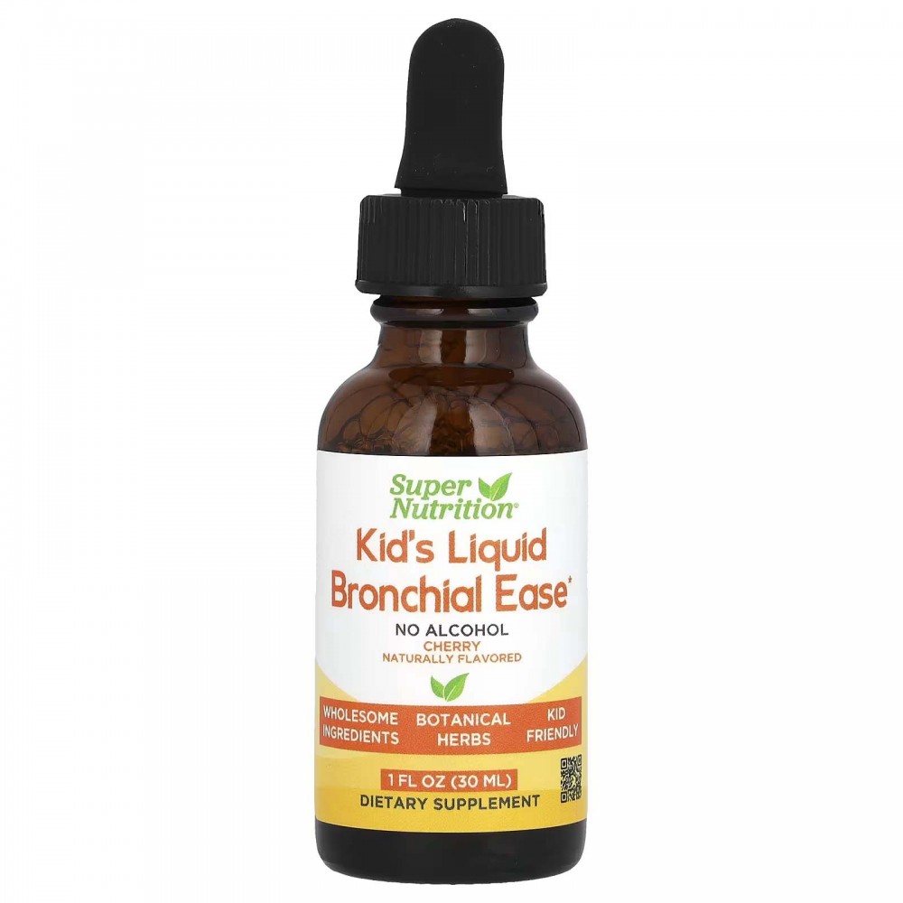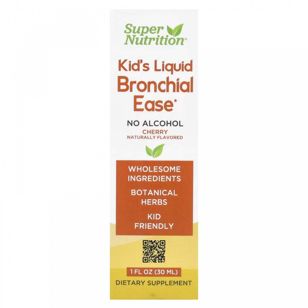 Super Nutrition, Kid's Liquid Bronchial Ease, дитячий засіб для бронхів, без спирту, вишня, 30 мл