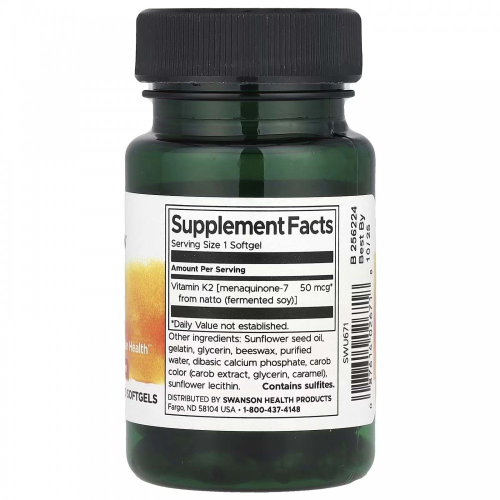 Swanson, Натуральний вітамін К2, 50 мкг, 30 капсул