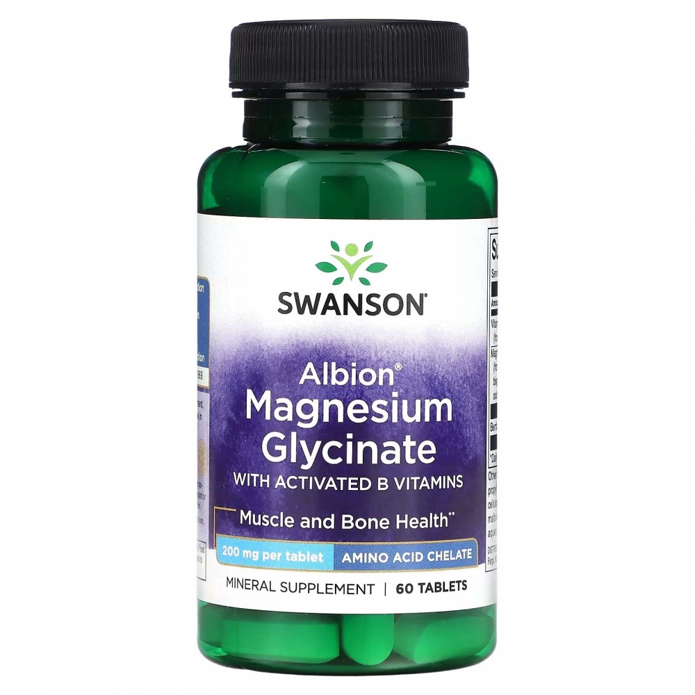 Swanson, Albion Магній гліцинат з активними вітамінами групи В, 200 mg, 60 таблеток