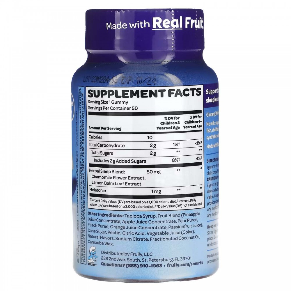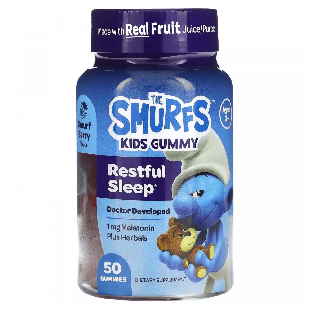 The Smurfs, дитячий мелатонін жувальні таблетки для спокійного сну для дітей від 3 років, ягоди, 50 жувальних таблеток