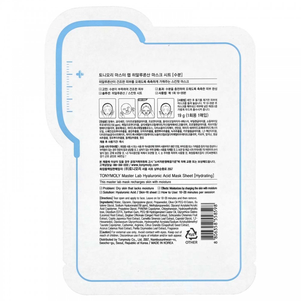 TonyMoly, Master Lab, Hyaluronic Acid Hydrating, 1 Sheet, 19 g
