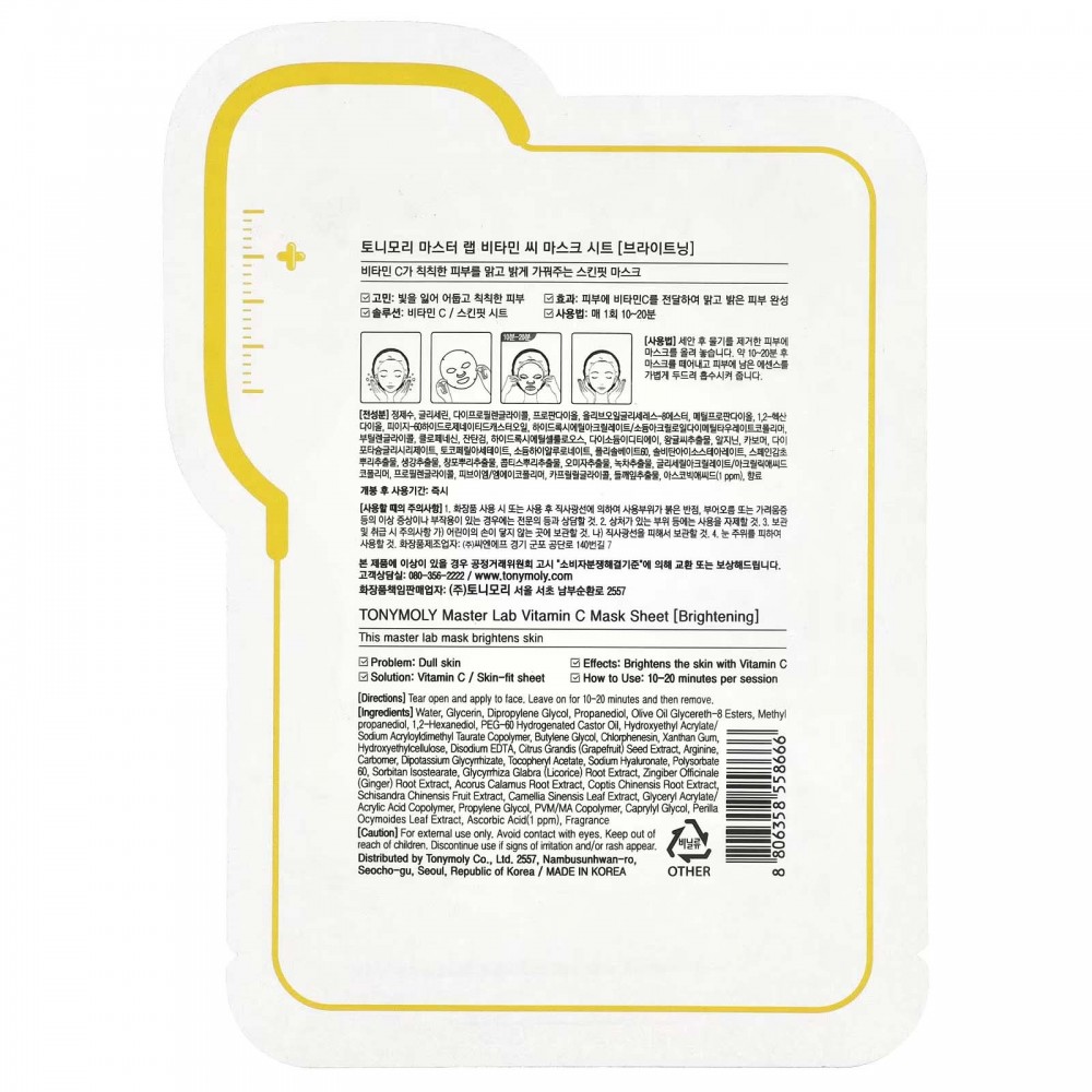 TonyMoly, Master Lab, Vitamin-C Brightening Beauty Mask, 1 Sheet (19 g)