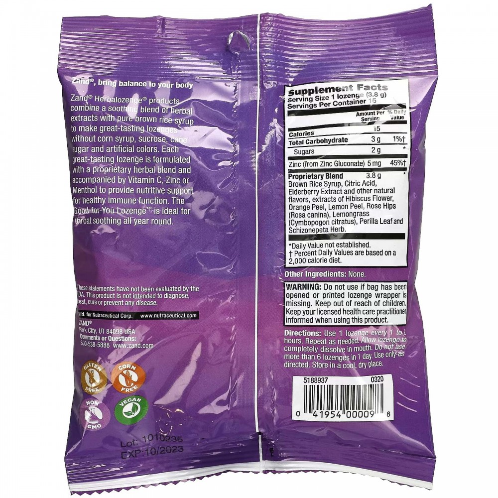 Продукти Zand® Herbalozenge ® містять заспокійливу суміш рослинних екстрактів із чистим рисовим сиропом, завдяки яким вони мають чудовий смак. Пастилки виготовлені без кукурудзяного сиропу, сахарози, тростинного цукру та штучних барвників. До складу смачних пластинок входить запатентована рослинна суміш, доповнена вітаміном С, цинком або ментолом для забезпечення поживної підтримки здорової імунної функції. Пастилки Good-for-You™ ідеально підходять для заспокоєння горла протягом усього року.